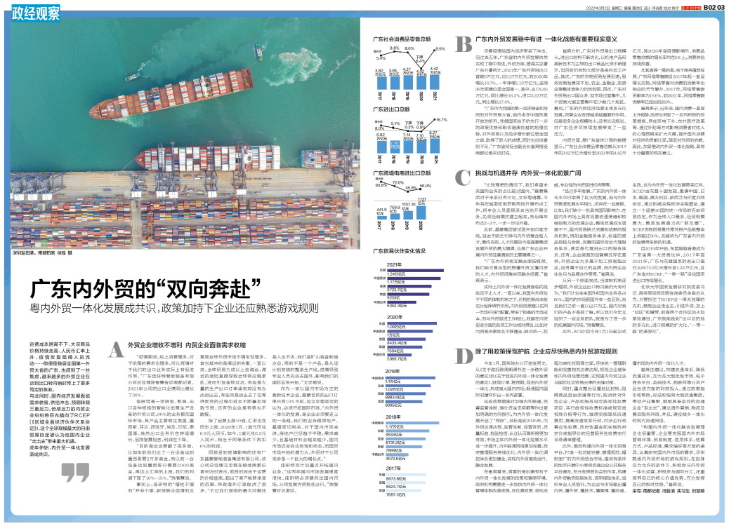 运费成本居高不下、大宗商品价格持续走高、人民币汇率上升、疫情反复阻碍人员流动……即便是稳居全国第一外贸大省的广东,也感到了一丝焦虑,越来越多的外贸企业在谈到出口转内销时带上了更多笃定的急迫。与此同