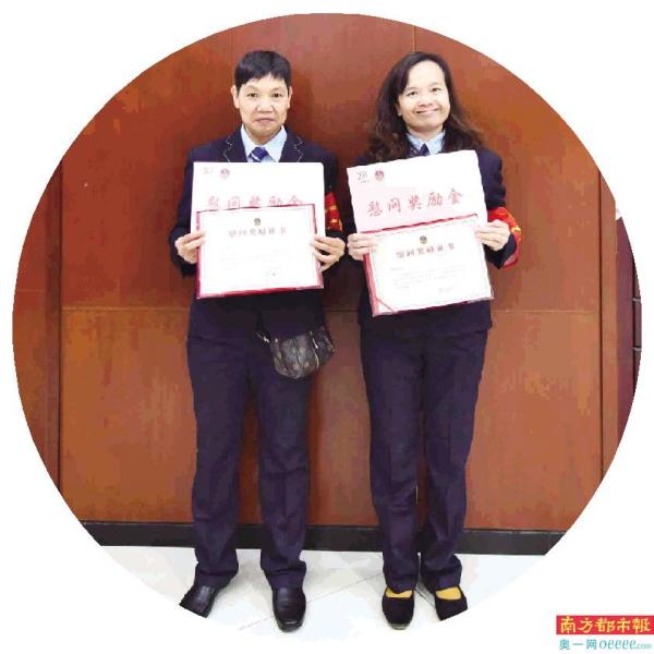 “的姐”刘丽娟(左)、樊惠芬(右)受到奖励。 通讯员供图