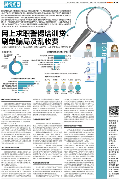 网络招聘已成为当前主流的招聘形式,但网上虚假招聘、个人信息泄露等问题又给不少求职者带来了困扰。为了解用户在使用网络招聘平台时遇到过的陷阱与套路,帮助求职者与招聘方“避坑”,课题组对最近两年关于网络
