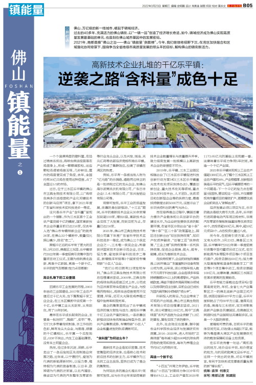 ◎开栏语 佛山,万亿级的新一线城市,崛起于镇域经济。过去的40多年,充满活力的佛山镇街,以“一镇一品”创造了经济增长奇迹。如今,镇域经济成为佛山实现高质量发展最基础的单元,也是刻在佛山城市基因中