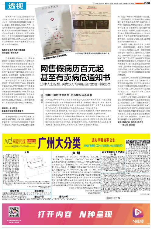 假病历一份100元,诊断证明一份120元,一份假冒三甲医院的体检报告180元,还可提供盖有假章的发票。近日,南都记者调查发现,网络上存在一条买卖假冒医院相关证明文件的黑灰产业链。有人购买假病历用于