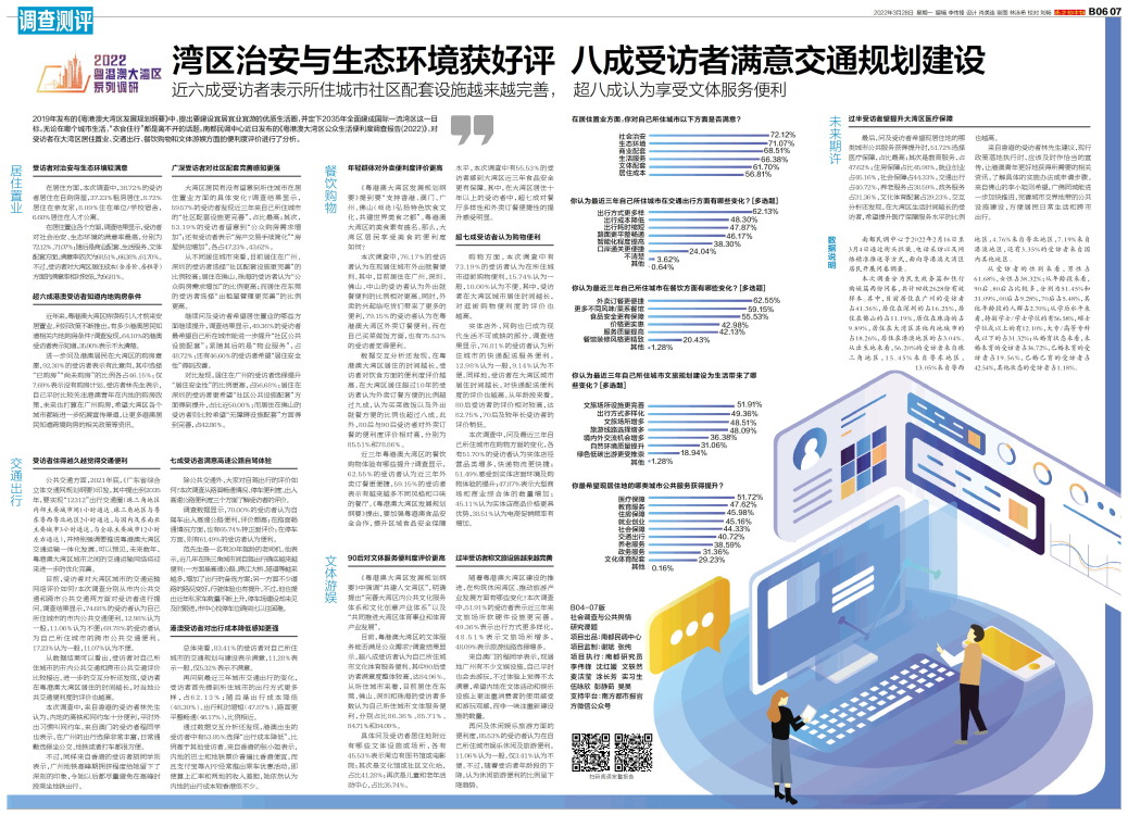 湾区治安与生态环境获好评 八成受访者满意交通规划建设