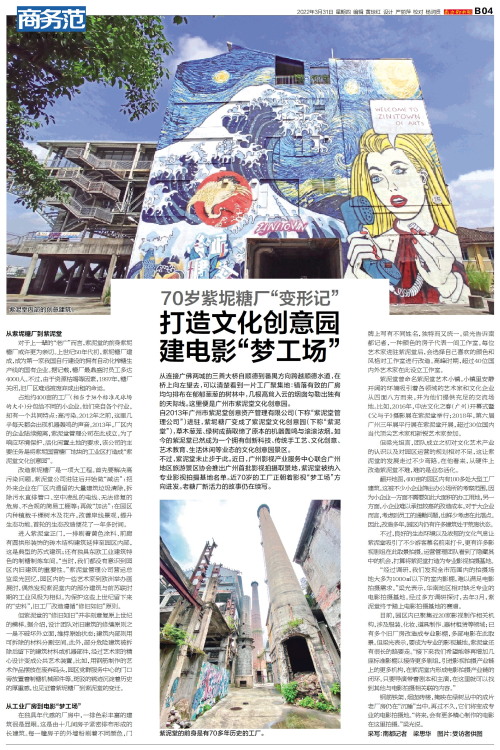 从连接广佛两城的三善大桥自顺德到番禺方向跨越顺德水道,在桥上向左望去,可以清楚看到一片工厂聚集地:错落有致的厂房均匀排布在郁郁葱葱的树林中,几根高耸入云的烟囱勾勒出独有的天际线。这里便是广州市紫泥