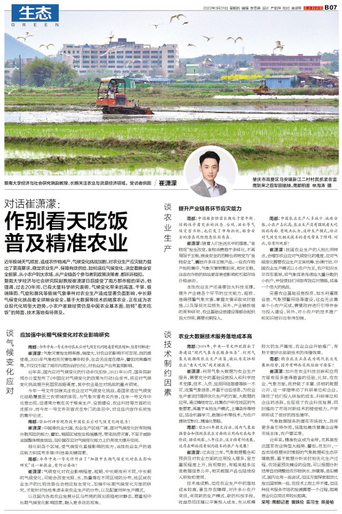 近年极端天气频发,造成农作物减产,气候变化挑战加剧,对农业生产应灾能力提出了更高要求。稳定农业生产,保障有效供给,如何适应气候变化,决定着粮食安全前景,从小农户到大农场,从产业链各个参与者到政策决