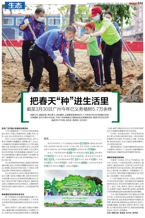 三月正值植树季,广州市全市域积极推进国土绿化,开展义务植树活动。街镇、学校、社区、企业、热心市民纷纷加入义务植树行列。