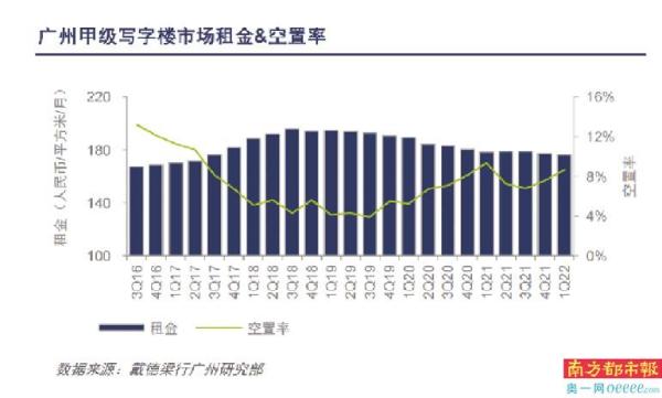 2022年,广州市政府工作报告首提“制造业立市”。广州制造业“再出发”的同时带动了甲级写字楼市场需求。日前,戴德梁行最新的房地产市场研究报告显示,高端制造业成交面积占广州一季度甲级写字楼成交面积的15.8%,需求环比扩大3.7个百分点。先进制造业发展所带来的需求有望成为广州办公市场的重要支撑之一。