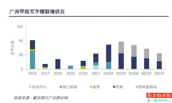 目前,广州主要在建写字楼项目集中在国际金融城以及琶洲区域,预计今明两年交付使用。未来三年,广州甲级写字楼市场将迎来超过214.2万平方米的新增供应。优质办公物业的井喷式入市将刺激市场活跃度,加速形成新的办公市场格局,并为产业升级提供有力的载体支持。