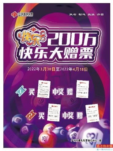 据悉,为回馈广大彩民,广州市福彩中心从3月30日起在全市开展了快乐8游戏“200万元快乐大赠票”活动,针对两种玩法开展赠票。活动期间,在广州市福彩实体投注站购买152元的快乐8游戏“选五4胆全拖”单倍单张且中奖的,可在店内获赠机选110元的快乐8游戏选9玩法11个号码复式的彩票一张;购买快乐8游戏“选九”玩法单票满20元以上(含)且中奖的,可获赠机选10元的快乐8游戏选四玩法(复式或胆拖)彩票一张。活动共安排200万元赠票资金,预计持续开展20天,如本次活动安排的赠票资金在活动期内使用完毕,则赠票活动在赠票资金用完当日快乐8游戏销售结束后停止。如本次活动安排的赠票资金在活动期内未使用完毕,则赠票活动在4月18日快乐8游戏销售结束后停止,赠票领取随活动结束停止。