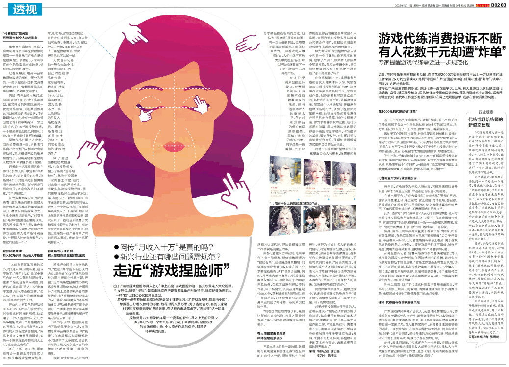 近年来,游戏消费为年轻人所热衷,有玩家想花钱提升段位,游戏代练应运而生,并逐渐出现职业化的趋势。