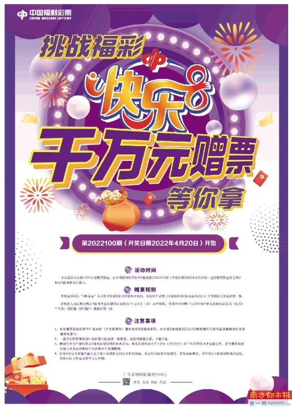全省福彩快乐8游戏1000万元赠票将于4月20日启动。 通讯员供图