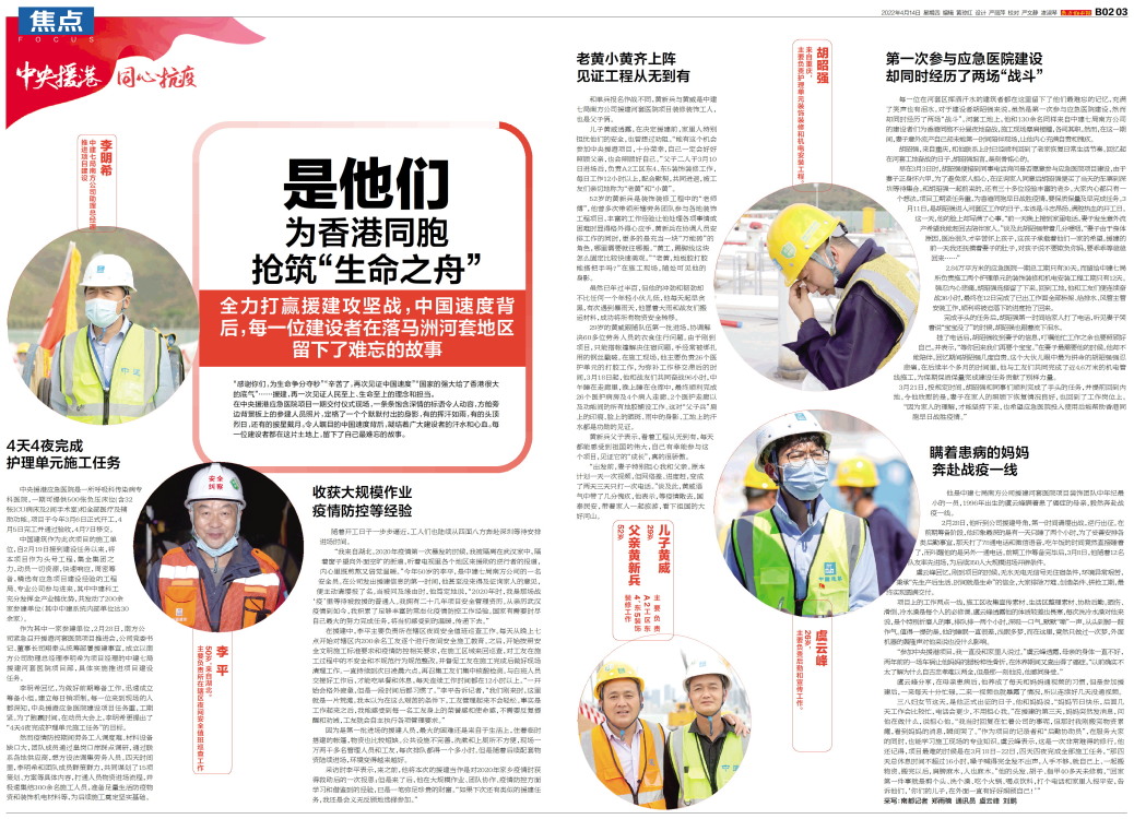 “感谢你们,为生命争分夺秒”“辛苦了,再次见证中国速度”“国家的强大给了香港很大的底气”……援建,再一次见证人民至上、生命至上的理念和担当。在中央援港应急医院项目一期交付仪式现场,一条条饱含深情的