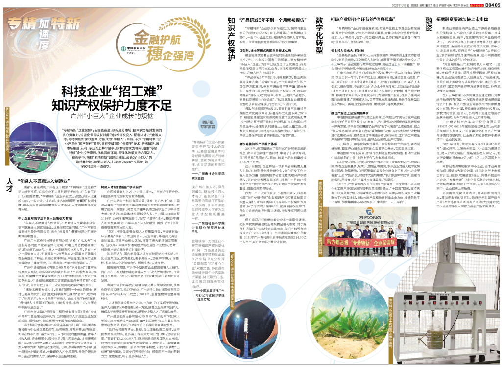 “专精特新”企业聚焦行业垂直赛道,耕耘细分市场,技术实力是其发展的核心竞争力。这些企业需较长时间的技术研发投入,配套人才、资金等支持,为持续创新能力蓄力,才能成为“小巨人”。目前,不少“专精特新”