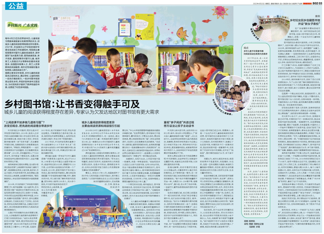 叶天娇给孩子们上阅读课。 览表村图书馆。 每年4月23日为世界读书日。儿童阅读习惯越来越受家长和教育界的关注,但城乡儿童的阅读获得程度还存在差异。2