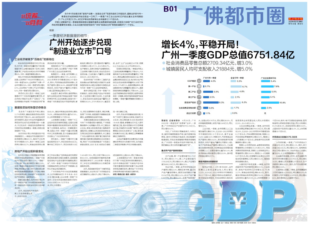 增长4%,平稳开局!广州一季度GDP总值6751.84亿