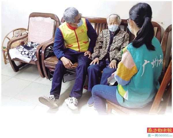 荔湾区东沙街社区志愿者和社工正在与老人谈心。通讯员供图