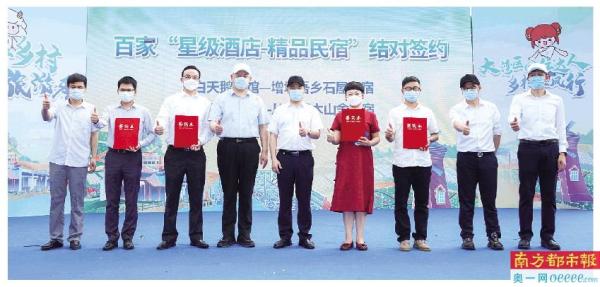 4月28日,“读懂广州·乡约好春光”2022年广州市乡村旅游季启动仪式在增城白水寨风景名胜景区举行。活动现场举办了百家“星级酒店-精品民宿”结对签约仪式,首批签约代表“白天鹅宾馆-增城吾乡石屋民宿”“中国大酒店-从化菁木山舍民宿”确认结对帮扶关系,将在服务、管理方面进行深入指导、持续交流和重点帮扶,多措并举助力广州乡村振兴。