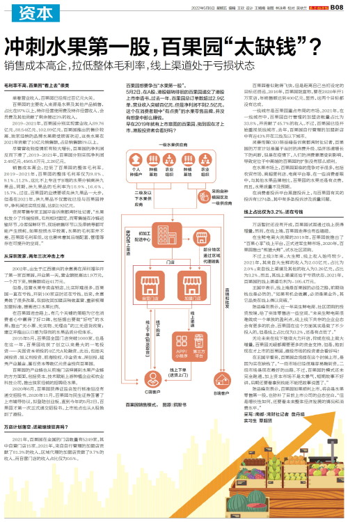 百果园想要争当“水果第一股”。 5月2日,在A股、港股辗转徘徊的百果园递交了港股上市申请书。过去一年,百果园总订单数超过2.9亿单,营业收入突破百亿元,但是净利润不到2.5亿元。这个在消费者眼中