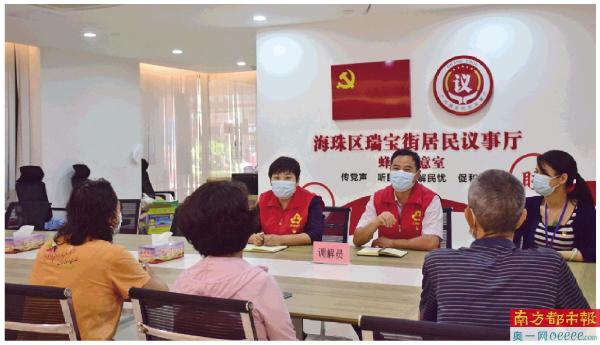海珠区瑞宝街红棉老兵志愿者在向来访居民做调解工作。王瑜玲 摄