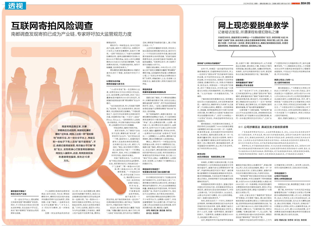 事实上,寄拍作为一个新型业态仍处在野蛮生长期,存在不少需要规范之处。南都记者了解到,寄拍往往停留在口头协议,在这过程中,寄拍者的隐私权和肖像权的保护根本无从谈起。有网友就曾在分享寄拍经历的网帖中写道,自己被人以“面试”的名义提出一些露骨要求,让其脱丝袜、拍视频,认为遇到了打着寄拍名义的骚扰行为。