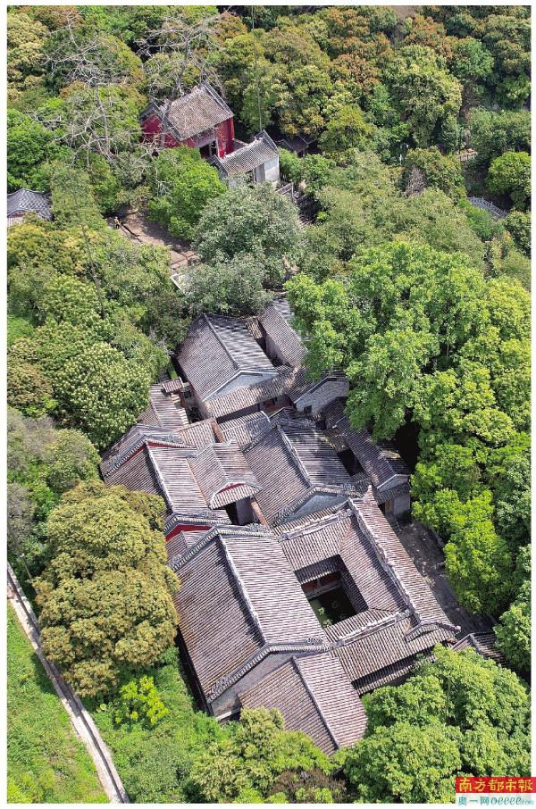 玉嵒书院航拍图,上方通体红色的建筑为文昌庙。