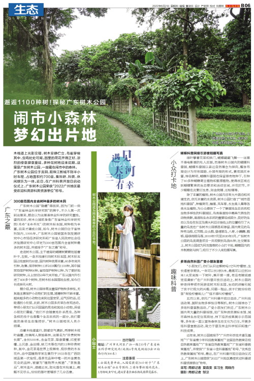 广东树木公园位于龙洞,占地面积约700亩,集科研、科普、休闲娱乐为一体。 树木公园成为网友推荐的小众打卡地。 木栈道上光影交错,树木安静伫