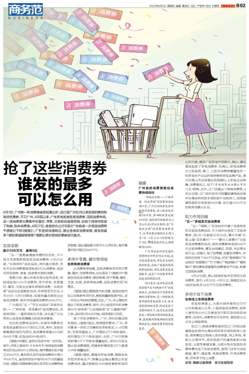 6月1日,广州新一轮消费券抽签结果出炉,这已是广州五月以来发放的第四轮政府优惠券。不只广州,4月底以来,广东多地发放各类消费券,活跃消费市场。这一波消费券主要集中在餐饮、零售、文旅和住宿等领域,也