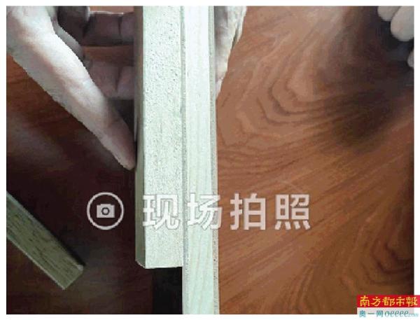 吴先生说,5月7日,吴先生找来同事,和经销商一同开箱验货。别墅有3层,因此每层楼每个房间都拆出一箱来看。拆开货物后,吴先生通过板材开孔的地方,发现板材并不是三层实木。但经销商却认定这就是“三层实木”。于是吴先生找来锯子把板材锯开,发现这只是纯松木板材,连续拆了好几箱,每箱板材都不对。另外,吴先生还反映,现场货物有一箱五金件疑似旧件,有很多灰尘和拧动过的痕迹。