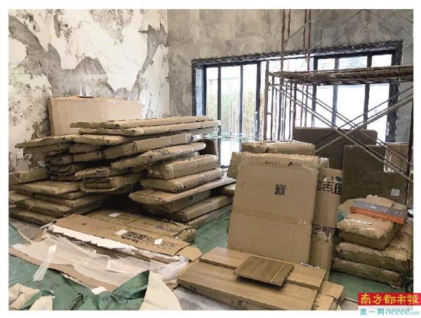 5月25日,南都·湾财社记者来到了装修地址处,这是一栋3层的别墅,尚未装修,每一层都堆满了家具板材,大多尚未拆封,纸皮包装上印有“顶固全屋定制 专注高端衣柜”的字句,还有收货人邵某的姓名及联系方式。