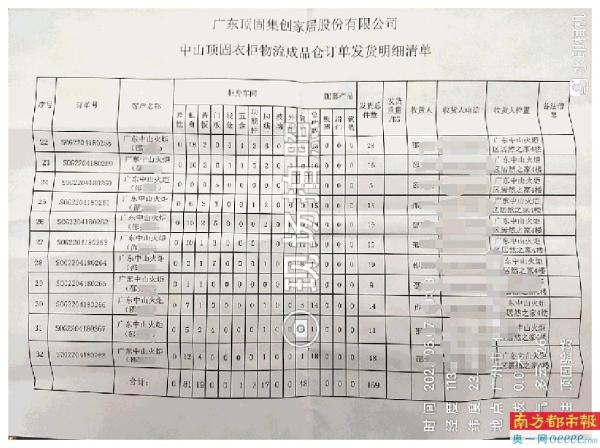 然而,根据5月7日现场点货时邵某提供给吴先生的发货明细清单,其购买了柜身、背板、五金、功能件等169件货物,收货人为邵某,收货地址为广东中山火炬开发区居然之家4楼,抬头为《广东顶固集创家居股份有限公司 中山顶固衣柜物流成品仓订单发货明细清单》。