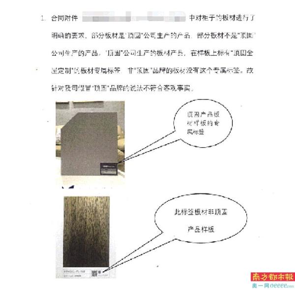 根据吴先生提供的中山市谊冠装饰科技有限公司5月20日出具的律师函回复,中山市谊冠装饰科技有限公司表示,合同附件对柜子板材进行了明确的要求,部分板材是“顶固”公司生产的产品,部分板材不是“顶固”公司生产的产品,因此“我司假冒‘顶固’品牌的说法不符合客观事实”。