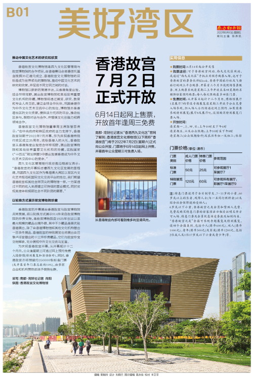 南都·湾财社记者从“香港西九文化区”官网了解到,香港故宫文化博物馆(以下简称“香港故宫”)将于2022年7月2日(星期六)正式向公众开放,门票将于6月14日起网上开售,开幕首年公众星期三可免费