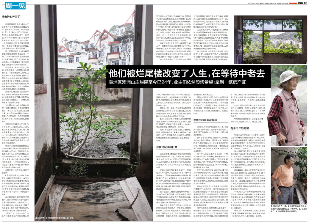 可就算如此,澳洲山庄却总在某个时刻跳脱出来,跟他们的人生发生躲不了、避不开的牵连。比如,一位女士多年前在澳洲山庄买了一套房子,缴纳了一半的房款后楼盘烂尾,就一直没管。当她近年来打算在黄埔买房时,却发现澳洲山庄地块的所辖地已由增城划归黄埔,导致她的购房名额被占,经多番奔走才得以解决。
