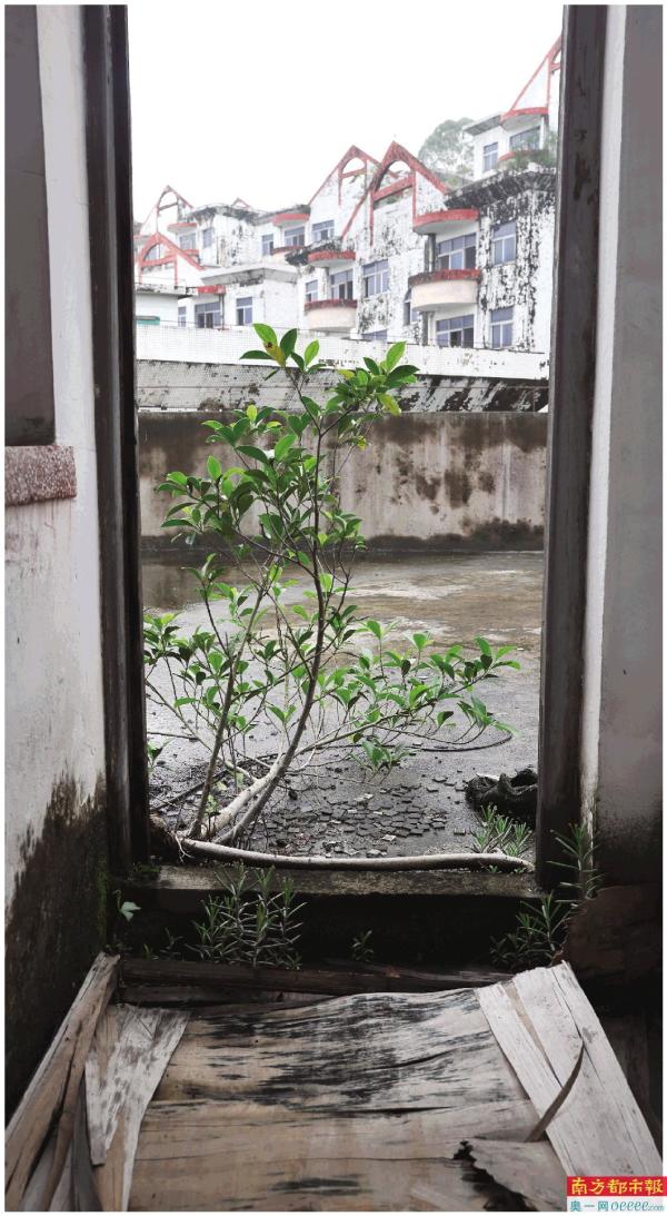 澳洲山庄内,无人打理的住宅楼甚至长出了绿植。
