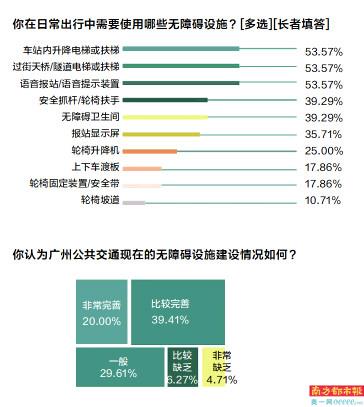 从上述调查结果可以看出,尽管近六成受访者认为广州公共交通无障碍设施较为完善,但在实际生活中依然有不少人出行时面临障碍。