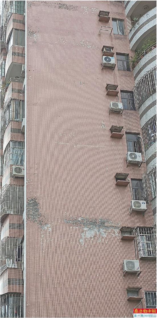廖先生称,小区外墙马赛克脱落严重。 (报料人供图)