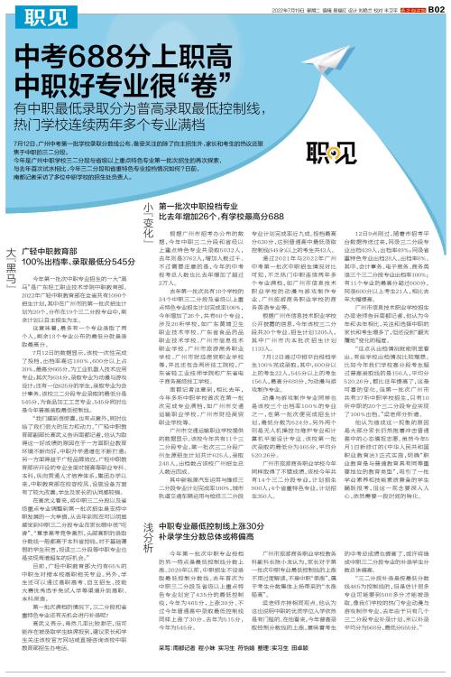 7月12日,广州中考第一批学校录取分数线公布,备受关注的除了自主招生外,家长和考生的热议还聚焦于中职的三二分段。