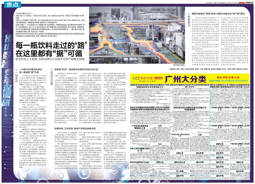 第 ③ 站 “计划达成率90.02%。” 在健力宝“5G+智慧工厂”数字化平台大屏上,每一瓶饮料走过的“路”,都变成了实时数据,有“据”可循。 在佛山三水西南的“水都小镇”,多个知名品牌以及