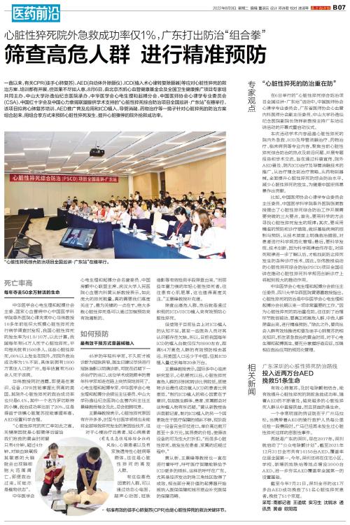 一直以来,有关CPR(徒手心肺复苏)、AED(自动体外除颤仪)、ICD(植入术心律转复除颤器)等应对心脏性猝死的救治方案、培训都有开展,但效果不尽如人意。8月6日,由北京杰凯心血管健康基金会及全国