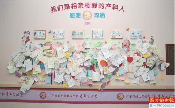 广东省妇幼保健院产科病区外的医患沟通墙上,贴满了产妇家属的祝福话语。
