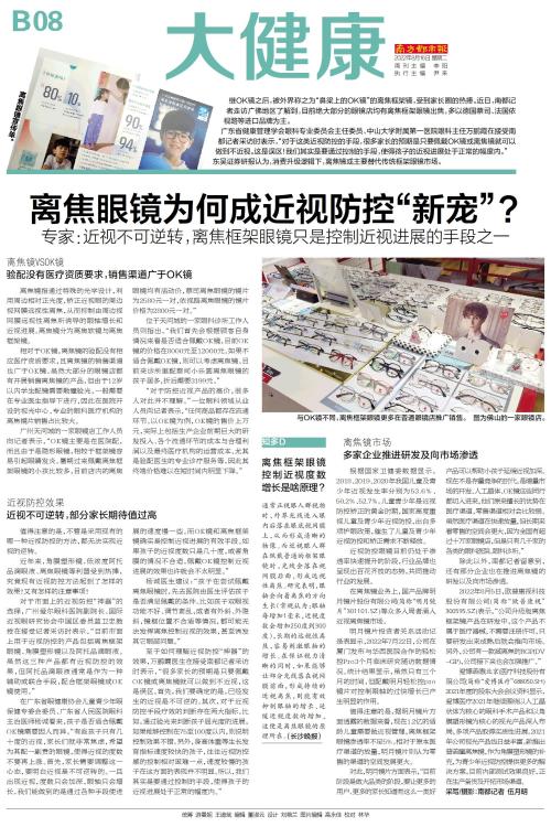 继OK镜之后,被外界称之为“鼻梁上的OK镜”的离焦框架镜,受到家长圈的热捧。近日,南都记者走访广佛地区了解到,目前绝大部分的眼镜店均有离焦框架眼镜出售,多以德国蔡司、法国依视路等进口品牌为主。