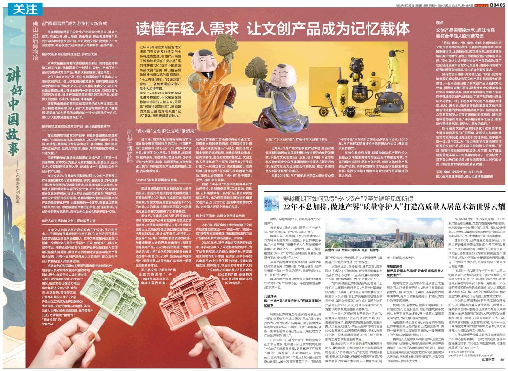 讲好中国故事 ——广东非遗系列报道 近年来,粤港澳大湾区各地文博部门在文创及非遗文创中多有成功尝试。例如广州南越王博物院开发的“虎小将”系列并获得“2020年中国旅游商品大赛”金奖,佛山祖庙博物