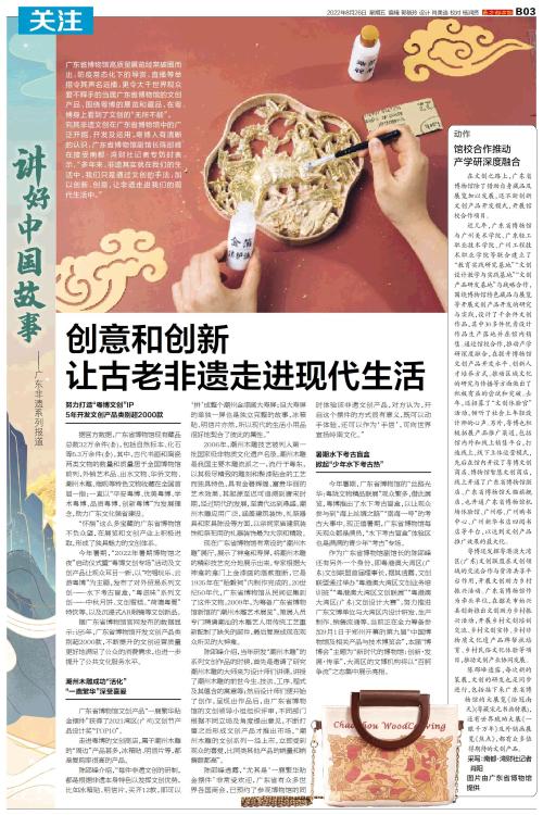 讲好中国故事——广东非遗系列报道 广东省博物馆高质量展览经常破圈而出,防疫常态化下的导赏、直播等举措令其声名远播,更令大千世界观众爱不释手的当属广东省博物馆的文创产品,围绕粤博的展览和藏品,在粤