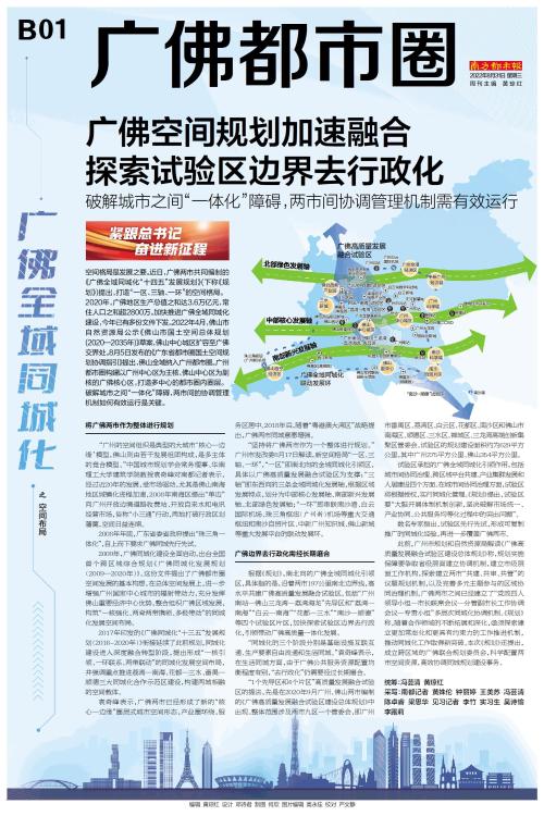 空间布局 空间格局是发展之要。近日,广佛两市共同编制的《广佛全域同城化“十四五”发展规划》(下称《规划》)提出,打造“一区、三轴、一环”的空间格局。
