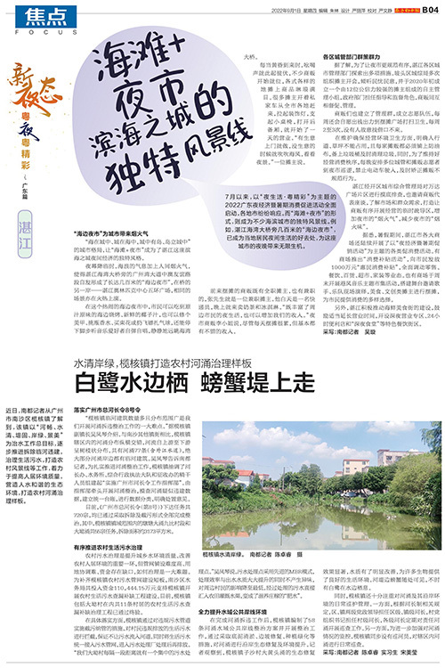 近日,南都记者从广州市南沙区榄核镇了解到,该镇以“河畅、水清、堤固、岸绿、景美”为治水工作总目标,逐步推进拆除临河违建,治理生活污水,打造农村风景线等工作,着力于提高人居环境质量,营造人水和谐的生