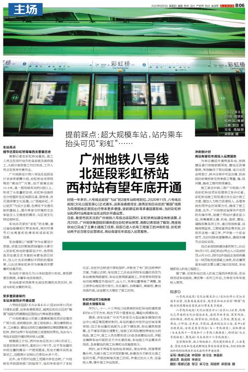 广州地铁八号线北延段彩虹桥站西村站有望年底开通