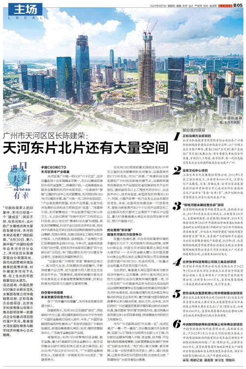 “可能在很多人的印象中,天河已经是一个‘建成区’;其实不然,在天河东片、北片的广大腹地还有大量的发展空间,天河的未来还有更广阔的前景。”8月30日,第八届中国广州国际投资年会天河平行分会上,天河区