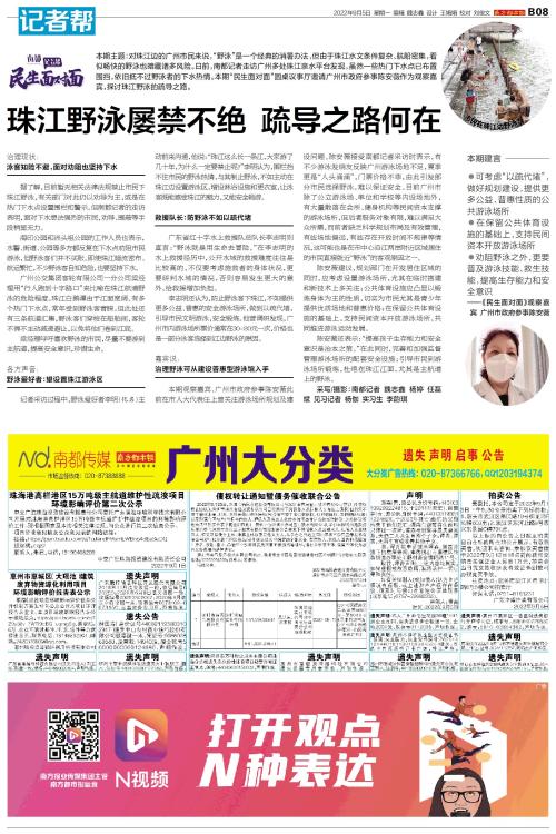 本期主题:对珠江边的广州市民来说,“野泳”是一个经典的消暑办法,但由于珠江水文条件复杂、航船密集,看似畅快的野泳也暗藏诸多风险。日前,南都记者走访广州多处珠江亲水平台发现,虽然一些热门下水点已布置
