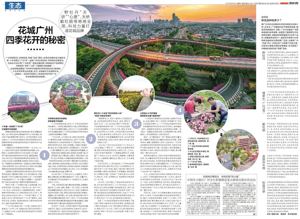 广州四季有花、四季常绿,有着“花城”美称。这背后有着科技力量的支撑:十年培育出“广州1号”,成就广州花卉新品种;天桥绿化反复尝试,历经近20年打造“广州彩带”;培育出国内首个具有知识产权的野牡丹新