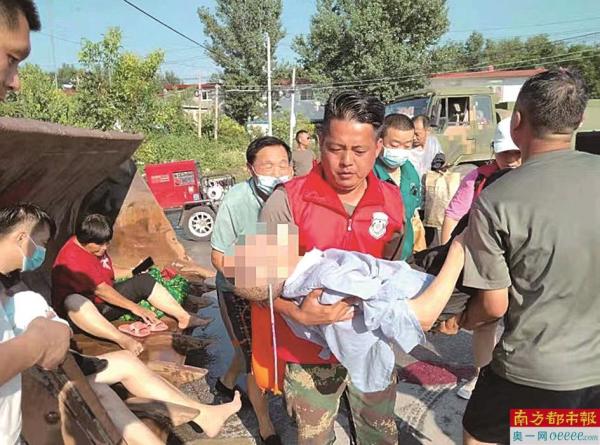 红棉老兵楒科应急救援志愿服务队队员在河南转运群众。受访者供图