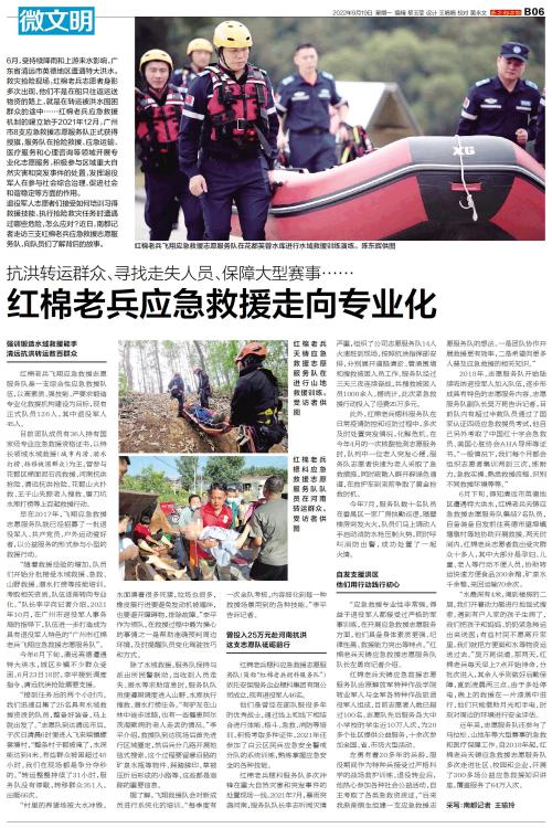 6月,受持续降雨和上游来水影响,广东省清远市英德地区遭遇特大洪水。救灾抢险现场,红棉老兵志愿者身影多次出现,他们不是在船只往返运送物资的路上,就是在转运被洪水围困群众的途中……红棉老兵应急救援机制